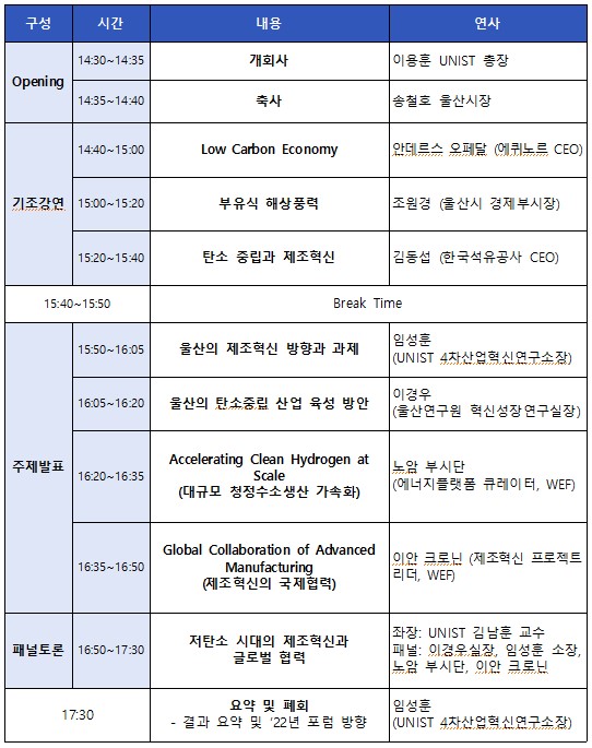 이번 포럼은 울산시가 주최하고 UNIST가 주관했으며, 세계경제포럼 제네바 본부가 협력했다.